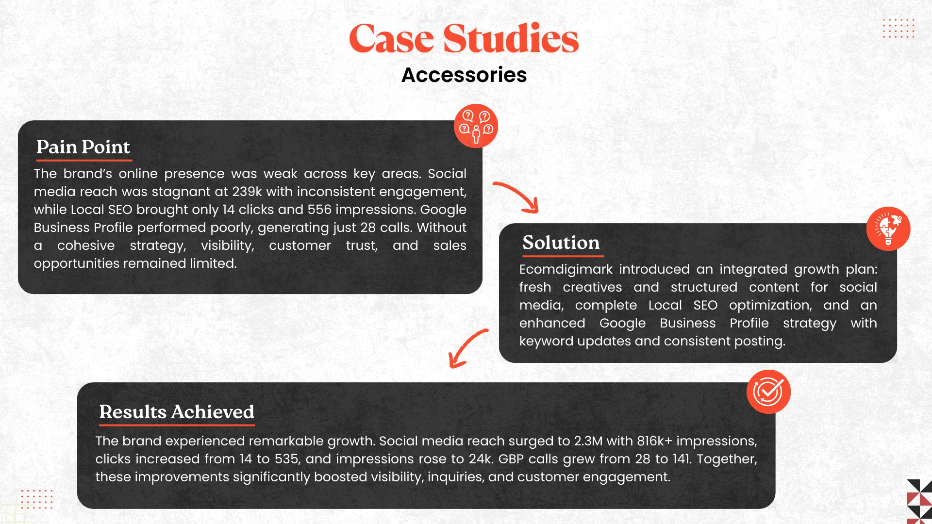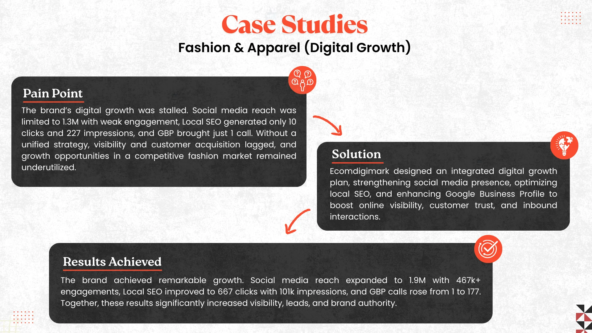 “Within 30 days of signing up for EcomDigiMark’s Local SEO and Google profile optimization, our rankings improved and our Facebook ads started converting followers into real buyers. ”